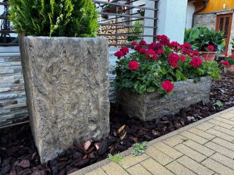 Skupina květináčů různých pravoúhlých tvarů patří k zajímavým doplňkům pro umístění mohutnější zeleně všude tam, kde by nebylo možné vysadit zeleň z prostorových nebo stavebních důvodů. Betonové KVĚTINÁČE v povrchovém provedení NATUR PATINA mají vzhled rustikálního dřeva hlubšího profilu. Tyto květináče z programu IMITACE DŘEVA budou skvělým oživením především v zahradě či na terase venkovského stavení, chaty či chalupy, ale propůjčením prostoru pro zeleň naruší i jednotvárnost vhodného veřejného prostoru.