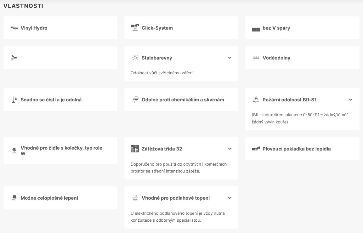 | Střední vrstva | voděodolná nosná deska Hydro |
